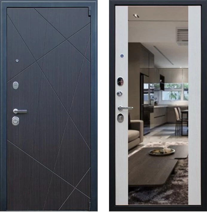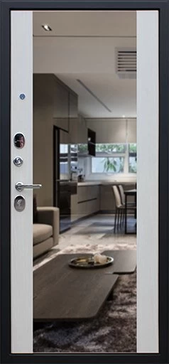 Надежная входная Дверь Вектор с зеркалом премиум класса по цене 49 053 руб. Большая толщина стали защитит от проникновения в ваш дом, квартиру или коттедж. Используется очень качественная фурнитура: замки, цилиндры, ручки, защелки. Покрытие и отделка двери изготовлено под внимательным контролем производителя. Дверь имеет долгий срок службы и гарантию.