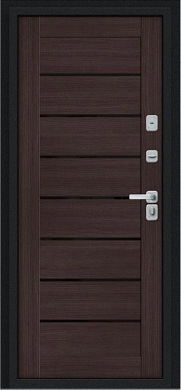 Дизайнерская входная Дверь Браво Thermo Техно Д2/BChrome Букле черное/Wenge Melinga класса Люкс с несколькими листами стали, звукоизоляцией и теплоизоляцией. Утепленный короб и полотно защитят от сквозняков и шумов. Модель не только надежная, комфортная, защищенная и высочайшего качества, но и очень красивая! Будет отлично сочетаться с интерьером дома, квартиры или офиса. Сейчас действует выгодное предложение по цене: 57 653 руб.